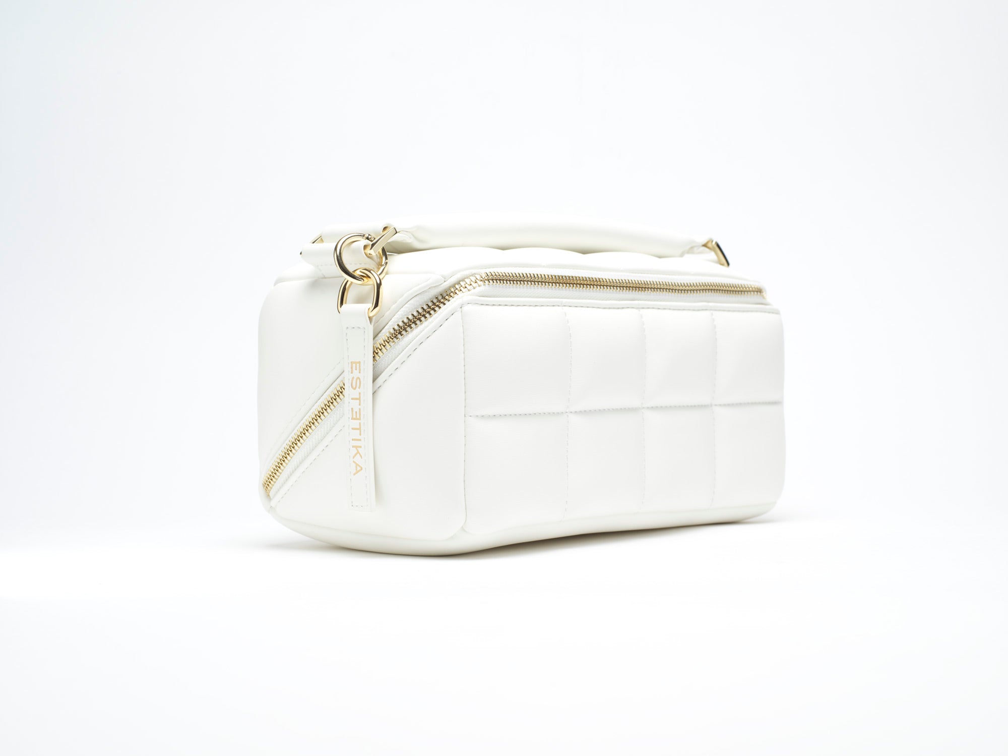 Crafted in Estetika’s buttery vegan leather with a quilted finish, the HOMEE in blush pink brings a softer touch of elegance to your vanity while still being durable enough for daily travel. Its recycled nylon lining is wipe-clean, making it practical as well as stylish.